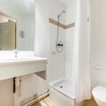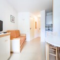 The residence is located just outside the heart of Vars-Les-Claux, only a few hundred meters from the resort center and the "Le Point Show" shopping center. Its simple, functional design complements the surrounding alpine architecture, making it an excellent choice for families or groups of friends seeking a budget-friendly stay. The residence offers a range of apartment sizes, including this 22 m² studio cabin, ideal for up to 3 guests. The apartment includes a cozy living room with a sofa bed and pull-out bed (ideal for children), a cabin area with a raised bed, a small dining area, and an open kitchen. The bathroom features a shower and separate WC.