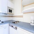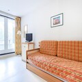 The apartment also comes with a furnished balcony, ski locker, and storage space. At just 500 meters from the resort center and 100 meters from shops, guests can easily access all necessary amenities.