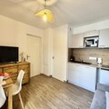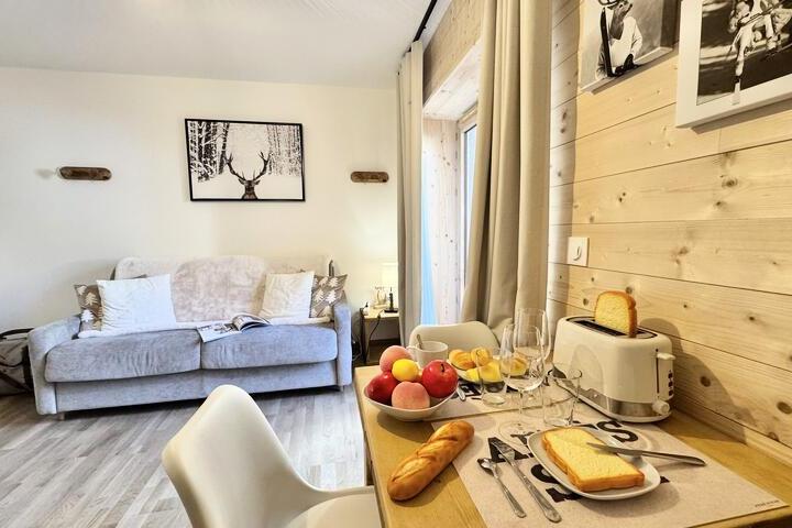 In the vibrant heart of Vars Les Claux resort, this cozy ground-floor studio apartment offers an inviting retreat just steps away from the slopes and local shops. Imagine waking up to the crisp mountain air, enjoying your morning coffee on the private terrace, and heading out for a day of alpine adventures with the snow front only 200 meters away. Whether you're here to ski, hike, or simply relax, this charming residence places you at the center of it all. \n\nDesigned for two guests, the apartment combines comfort and practicality with a bright living room that opens onto the terrace, creating a seamless indoor-outdoor experience. The 160x200 sofa bed ensures restful nights, while the fully equipped kitchen—complete with a microwave, dishwasher, Nespresso coffee machine, and refrigerator—makes meal preparation effortless. Additional amenities like a television and private covered parking add convenience to your stay, while linens and end-of-stay cleaning are included for a worry-free experience. \n\nVars Les Claux is renowned for its lively atmosphere and proximity to the slopes, making it a favorite destination for winter sports enthusiasts and summer adventurers alike. Explore the nearby trails, indulge in local cuisine, or simply soak in the breathtaking alpine views. While the residence is completed, please note that construction work is ongoing in the neighboring complex, which may affect the surroundings. \n\nPerfect for couples seeking a peaceful mountain escape, this smoke-free and pet-free apartment is your gateway to the beauty of the French Alps. Book your stay today and create unforgettable memories in this charming alpine haven.