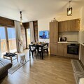 In the vibrant heart of Vars Les Claux resort, this delightful apartment offers a cozy retreat just 200 meters from the snow front, ensuring effortless access to the slopes. Wake up to the golden glow of the morning sun on your east-facing terrace, perfect for enjoying breakfast while soaking in the crisp mountain air. Whether you're here for thrilling winter sports or serene summer hikes, this residence places you at the center of alpine charm and adventure. The nearby shops and services make it easy to immerse yourself in the lively atmosphere of the resort, while the surrounding peaks promise breathtaking views and unforgettable moments. \n\nDesigned for up to six guests, the apartment boasts a thoughtful layout that combines comfort and practicality. The double bedroom is bathed in natural light, creating a peaceful haven for restful nights. Two single beds can be arranged to suit your needs, whether in the living room or bedroom, offering flexibility for families or friends. The spacious living area features a fully equipped kitchen with modern appliances, a dining table, a double sofa bed, and a television, ensuring a welcoming space to relax after a day of exploration. The bathroom is conveniently fitted with a toilet, and amenities like a dishwasher, washing machine, and induction hob make your stay seamless. \n\nWith private covered parking included, you can enjoy hassle-free access to your vehicle, while the Vars agency nearby offers ski passes and equipment rentals to enhance your holiday experience. Although construction work is ongoing in the neighboring complex, the completed residence guarantees a tranquil and comfortable stay. Pets are not allowed, and the apartment is strictly non-smoking, ensuring a clean and pleasant environment for all guests. \n\nWhether you're drawn to the slopes or the serene beauty of the mountains, this charming apartment in Vars Les Claux is your gateway to an unforgettable alpine escape.