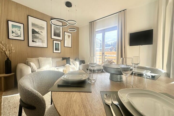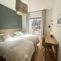 In the vibrant heart of Vars Les Claux resort, this modern apartment offers a serene mountain retreat just steps from the slopes and local amenities. Imagine waking up to the crisp alpine air, enjoying breakfast on your southeast-facing terrace, and heading out to explore the snowy landscapes or charming village streets. With its prime location just 200 meters from the snow front, this residence is perfect for those seeking convenience and comfort in the French Alps. Whether you're here for skiing, hiking, or simply relaxing, this cozy apartment sets the stage for unforgettable moments. \n\nDesigned for up to four guests, the apartment boasts a thoughtfully arranged layout with two beautifully decorated bedrooms. The master bedroom features a double bed and a walk-in closet, while the second bedroom offers two single beds that can be combined, along with a practical office space for remote work. The spacious living area is ideal for unwinding after a day of adventure, complete with a fully equipped kitchen featuring modern appliances like a Nespresso coffee machine, combi oven, and dishwasher. A comfortable sofa, dining table, and television create a welcoming atmosphere for evenings spent indoors. \n\nThe residence also provides private covered parking, ensuring ease of access throughout your stay. For added convenience, the local Vars agency offers ski pass sales and equipment rentals, making it effortless to hit the slopes. While end-of-stay cleaning and linens are optional, they can be arranged through the agency for a hassle-free experience. \n\nDiscover the charm of Vars Les Claux, where alpine beauty meets modern comfort. Whether you're savoring sunny lunches on the terrace or exploring the nearby trails, this apartment is your gateway to an unforgettable mountain escape. Please note that pets are not allowed, and the apartment is non-smoking. Nearby construction work is ongoing, but the tranquility of the mountains remains undisturbed.