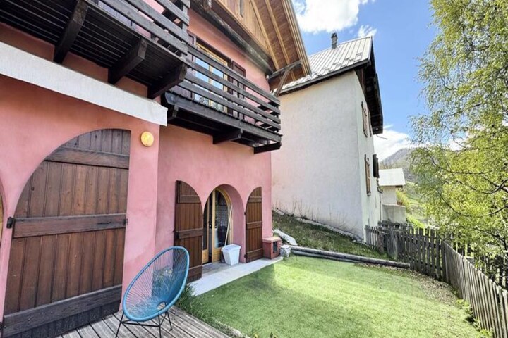 In the serene village of Sainte-Catherine, where the majestic Écrins mountain range stretches across the horizon, this traditional alpine house offers a unique blend of charm and comfort. With its vaulted ceilings and pink façade, the property exudes authentic character, inviting guests to immerse themselves in the tranquil beauty of the Southern Alps. Whether you’re gazing out from the terrace or relaxing in the southwest-facing garden, the panoramic views promise to captivate your senses and provide a perfect backdrop for your mountain retreat. A free shuttle from the village square ensures effortless access to the nearby ski resort, making this location ideal for both adventure and relaxation. \n\nSpanning an impressive 200 m², this 4-star residence accommodates up to 12 guests, making it perfect for families or groups of friends. The upper floor features four thoughtfully designed bedrooms, including two double rooms with balcony access, a children’s room with bunk beds and pull-out beds, and a twin room. Each space is equipped with modern amenities, such as private bathrooms and ample storage, ensuring comfort for all. On the lower floor, the bright and spacious living area invites you to unwind by the fireplace, enjoy a family meal in the dining room, or explore your musical side with the piano and guitar. The fully equipped kitchen, complete with high-end appliances, is tailored for large gatherings, while Wi-Fi keeps you connected throughout your stay. \n\nLocated just minutes from Vars La Forêt Blanche, this house offers the best of both worlds: the peace of a preserved hamlet and the excitement of world-class skiing. Free shuttles and a nearby ski lift make reaching the slopes effortless, while the surrounding area is perfect for hiking and exploring the alpine landscape. Whether you’re seeking thrilling adventures or quiet moments in nature, this mountain retreat promises unforgettable memories in the heart of the Southern Alps. \n\nChoose this charming property for your next holiday and experience the perfect balance of authenticity, comfort, and breathtaking scenery.