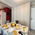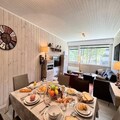 Spanning 73 m², the apartment is thoughtfully designed to accommodate up to eight guests. It features two cozy bedrooms with double beds and a third bedroom with two bunk beds, making it ideal for families or groups of friends. The spacious layout includes a modern shower room, two separate toilets, and a large window that floods the space with natural light while ensuring complete privacy. The fully equipped kitchen is a dream for culinary enthusiasts, offering everything from a hob and oven to a raclette and fondue set, perfect for enjoying traditional mountain meals after a day on the slopes. Additional amenities include a television, a washing machine, and both a standard and stick vacuum for your convenience.