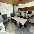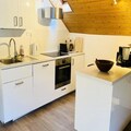 Inside, the 47m² apartment is thoughtfully designed to ensure comfort and relaxation. The sleeping arrangements include a cozy double bedroom, a room with bunk beds ideal for children or friends, and a sofa bed in the spacious living room. The fully equipped kitchen features an oven, microwave, dishwasher, and Nespresso coffee machine, making it easy to prepare hearty meals after a day of exploration. Gather around the dining table for a raclette or enjoy a game of cards in the warm ambiance of the living area. Additional amenities like Wi-Fi, a baby cot, a raclette grill, and a hairdryer are provided to enhance your stay.