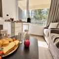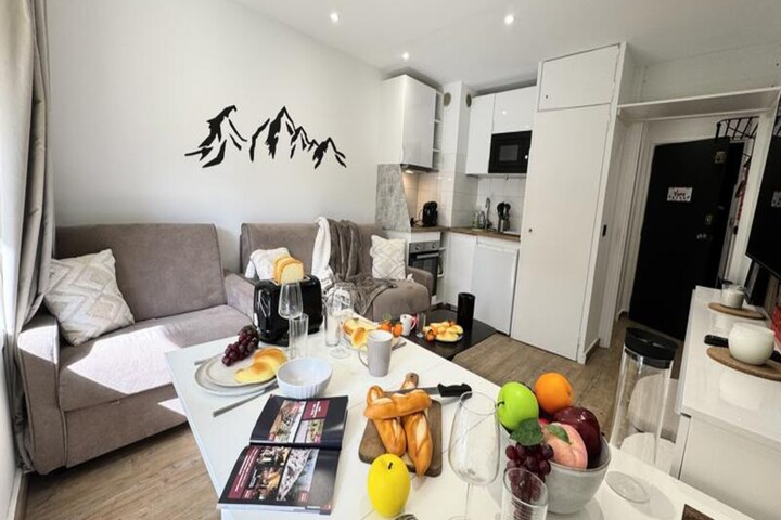 Thoughtfully designed for up to three guests, the apartment features a bright and inviting living space with two comfortable sofa beds, one single and one double, each with real mattresses for a restful night's sleep. The fully equipped modern kitchen includes everything you need to prepare hearty meals, from a refrigerator and oven to a Bosch coffee maker and even raclette and fondue sets for an authentic alpine dining experience. A well-appointed bathroom, a ski locker for your gear, and thoughtful touches like a television and hairdryer ensure your stay is as convenient as it is comfortable.