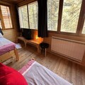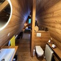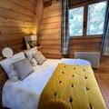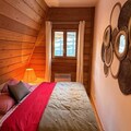 The first floor boasts a large living room with a fireplace, an open kitchen, and a terrace with serene views of the fir trees. Upstairs, two bedrooms with double beds and a master suite under the roof, complete with a bathtub and stunning views, offer comfortable accommodations. With a fully equipped kitchen, modern amenities, and thoughtful touches like a Nespresso machine and raclette set, this chalet is perfect for a family or group getaway.