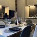 The apartment is fully equipped with modern amenities, including a cordless vacuum cleaner, Nespresso coffee machine, microwave, oven, induction hobs, dishwasher, freezer, fridge, toaster, washing machine, raclette machine, and fondue set. Additional features include a TV, SMART TV with internet box, and board games. A ski locker and private parking space are also available. Linen is optional at €16 per person, and end-of-stay cleaning is not included. The property is strictly non-smoking and pets are not allowed. A €1500 deposit is required.