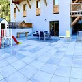 The Forêt Blanche Agency offers a spacious 53m² apartment in Vars les Claux, featuring a large open-plan living room and kitchen that leads to a 140m² terrace, ideal for enjoying the outdoors. The terrace is equipped with a children's cabin, table, chairs, and sleds. The apartment includes a double bedroom with a 160 cm bed, a second closed bedroom with two 80 cm bunk beds, and an additional bed for a child. There is also a shower room with a WC.