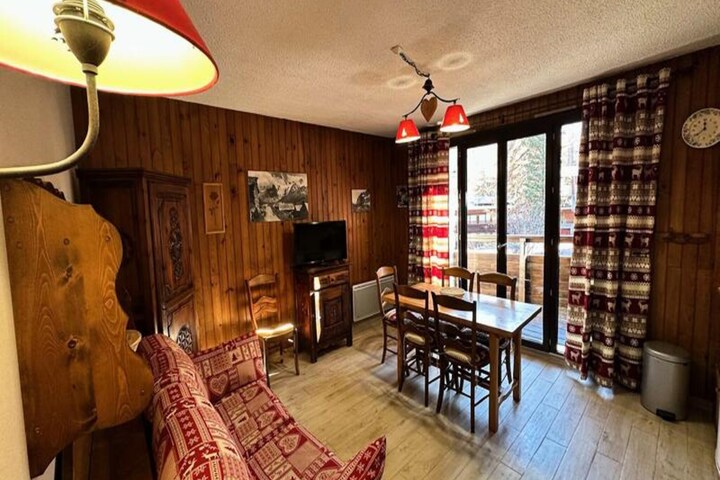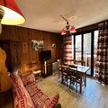 This well-located apartment offers comfortable accommodation for up to 4 people. The living room is equipped with a kitchenette and opens onto a balcony, providing a pleasant outdoor space with views of the surrounding area. The apartment includes two sleeping areas: one with two single bunk beds in a mountain corner at the entrance, and the other with a convertible sofa bed with a real mattress, ideal for a restful sleep. A separate shower room and toilet add to the convenience. The apartment also includes essential amenities such as a dishwasher, fridge, grill oven, induction hobs, raclette machine, and a Nespresso coffee machine. The residence is non-smoking, and pets are not allowed.