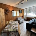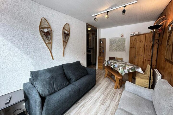 Property, along with its functional design, offers a comfortable base for families or small groups, accommodating up to 6 people. The apartment features 3 sleeping areas, including 2 cabins with single bunk beds and a private bedroom with a double bed. The living room, which is bright and spacious, includes a sofa and opens onto a south-facing terrace for guests to enjoy the sun. The property is not pet-friendly and maintains a strict no-smoking policy. For added convenience, a ski box is provided for storing equipment, and optional services such as linen rentals (sheets and towels) are available at an additional cost. End-of-stay cleaning is not included in the rental rate, allowing flexibility for guests to arrange it separately if desired.