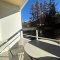 Sleeping arrangements include a mountain corner with a 90x200 bed, a bedroom with a 160x200 double bed, and a 160x200 double sofa bed, comfortably accommodating up to six guests. The apartment also includes a separate toilet and a shower room. The large balcony offers stunning views of the surrounding mountains and slopes, providing a perfect spot to relax after an active day.