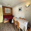 This 30m² apartment in the Eyssina residence is perfectly located in the heart of Vars les Claux, just steps from the ski slopes and near the Point Show shopping gallery. Situated on the 3rd floor with elevator access, it can comfortably accommodate up to 5 people and offers easy access to both the slopes and local amenities. The apartment features a bright living room that opens onto the kitchen, a double bedroom, a separate cabin with bunk beds, a bathroom, and a separate toilet. The south-facing balcony provides a beautiful space to enjoy the sunshine and surrounding mountain views.The well-equipped kitchen includes a kettle, toaster, raclette machine, filter coffee machine, microwave, dishwasher, and electric hob. Sleeping arrangements include a double bed (140x200 cm) in the bedroom, two single beds in the cabin (90x180 cm), and a convertible sofa (140x200 cm) in the living room.