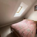 On the main level, you'll find a cozy double bedroom, a sofa bed in the living room, and a bathroom with a separate WC. Upstairs, two more bedrooms are located, one with a double bed and the other with two single beds. There is also a second bathroom and a separate toilet on this level, ensuring plenty of space and comfort for all guests.