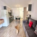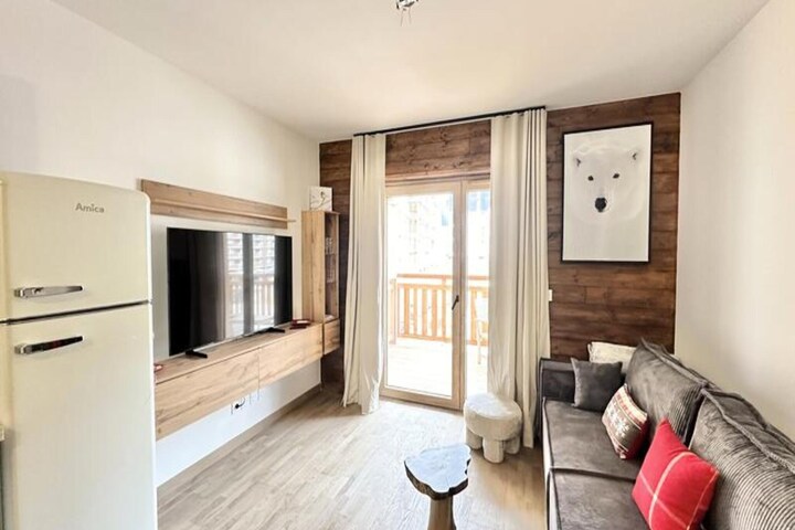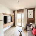 This charming 45 m² apartment, located on the third floor of a new residence, is perfect for up to 4 guests. With a southern exposure, it offers a bright and inviting space. The apartment includes a double bedroom, a cabin with bunk beds (suitable for both adults and children), and a spacious living area featuring a dining table, sofa, and television. A terrace provides a stunning mountain view.