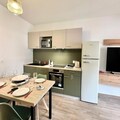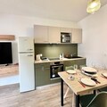 The apartment is fully equipped for your convenience, with amenities such as a freezer, refrigerator, raclette machine, toaster, hand blender, oven, induction hob, microwave, dishwasher, kettle, and filter coffee machine. Sheets, towels, and end-of-stay cleaning are included in the rental, with beds made upon arrival.