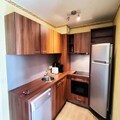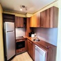 The apartment includes an American kitchen and a dining area, providing all the necessary amenities for meal preparation. Guests can enjoy the 7 m² balcony with stunning views of the slopes and the north-facing mountain. For added convenience, the apartment also has heating, ensuring comfort during colder months. Departure cleaning is available for an additional fee or can be done by the guest.