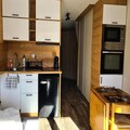 The studio features a well-equipped kitchen with a microwave, oven, two fridge-freezers, and coffee makers, ensuring a comfortable self-catering experience. A modern shower room complements the space, and the south-facing orientation offers unobstructed mountain views. Departure cleaning services are available for added convenience, ensuring a hassle-free stay in the serene southern Alps.
