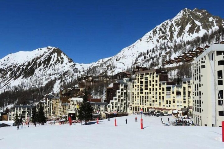 This 40 m² apartment sleeps up to 6 people and is located in a mountain residence at the top of the resort, just 5 minutes from the ski lifts. It features a living room with a pull-out sofa bed, access to a large south-facing terrace, dining area, and television. The American kitchen includes a mini oven, microwave, 4-burner ceramic hob, hood, and refrigerator. The apartment also has a large entrance with 4 bunk beds (for children) and 1 single bed. Pets are not allowed.