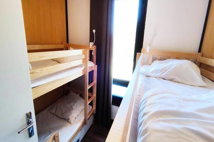 This spacious 70m² apartment comfortably accommodates up to 8 people, making it an excellent choice for families or groups. It features three bedrooms: two with double beds and one with four bunk beds, ideal for children. The apartment includes a bathroom, a shower room with a WC, and a separate WC. A south-facing balcony offers beautiful views of the slopes. The property is non-smoking, and pets are not allowed. Guests can enjoy easy access to the ski room at the entrance of the building, and a covered garage is provided for convenience. Internet is included for all guests.