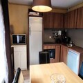 The apartment features an American kitchen, dining area, and a spacious living room. It is equipped with essential amenities, including a fridge, stove, and microwave. Sheets and towels are included for winter stays of 5 days or more, and departure cleaning is available for an additional cost. A covered parking space is provided for your convenience.