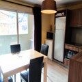This spacious 3-room apartment can accommodate up to 6 guests, offering two bedrooms, one with a 140 cm bed and the other with two 90 cm beds. The living room features a sofa bed with two single mattresses, ensuring comfort for all guests. The apartment is non-smoking and does not allow pets. It provides a large balcony with exceptional views of the slopes and the north-facing side, making it an ideal retreat for nature lovers. The apartment also includes a separate toilet and a shower room with WC.