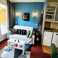 This charming apartment, located in a prime spot overlooking the Mercantour National Park, offers comfortable accommodation for up to four guests. The living area features a sofa bed and an additional foldable chair for extra sleeping space. The bedroom includes a double bed (160 cm) and a TV. Pets are welcome for an extra fee, and the property also includes a separate WC and a bathroom with a bathtub.