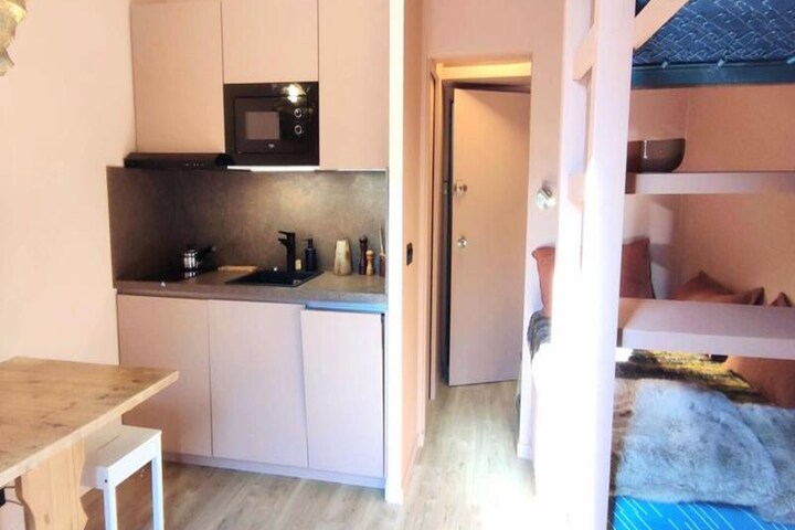 In the enchanting Southern Alps, where the rugged beauty of Mercantour National Park meets the vibrant energy of Isola 2000, this cozy studio offers a delightful retreat for a parent and child. Located on the second floor of the Front de Neige complex, the property boasts an east-facing window that fills the space with morning light and stunning views of the surrounding peaks. Whether you're here to ski the pristine slopes or explore alpine trails, this studio places you at the heart of the action, just steps above the resort’s shopping arcade and activities.