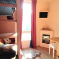 Thoughtfully designed for comfort, the studio features a living room with a double sofa bed and two single bunk beds, making it both practical and inviting. The fully equipped kitchen allows you to prepare meals with ease, while the bathroom with toilet ensures convenience during your stay. With heating provided, you’ll stay warm and cozy after a day of adventure. Please note that smoking and pets are not permitted, ensuring a clean and tranquil environment.