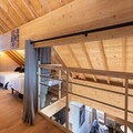 Living room(TV(flatscreen), seating area), open kitchen(hob(ceramic), electric kettle, toaster, coffee machine, oven, microwave, dishwasher, fridge, dishes and cutlery), bedroom(double bed(160 x 200 cm)), bedroom(single bed, single bed), bathroom(shower, toilet), bathroom(shower, toilet), toilet(toilet), mezzanine(single bed(90 x 190 cm), single bed(90 x 190 cm), single bed(90 x 190 cm), single bed(90 x 190 cm), single bed(90 x 190 cm)), Internet access, terrace, Mountain view