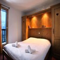 The residence itself is a collection of five traditional chalets, blending stone and wood to create a warm and authentic alpine atmosphere. Inside, you’ll find a spacious living room with a cozy fireplace, a fully equipped kitchen, and accommodations designed for comfort. With one double bedroom, three twin bedrooms, and up to four bathrooms, this property is ideal for groups of up to eight guests. Relax on your private balcony, or take advantage of the complimentary access to the relaxation center, featuring a heated indoor pool, sauna, and fitness room. Modern conveniences such as free Wi-Fi at reception, ski lockers, and covered parking ensure a seamless stay.