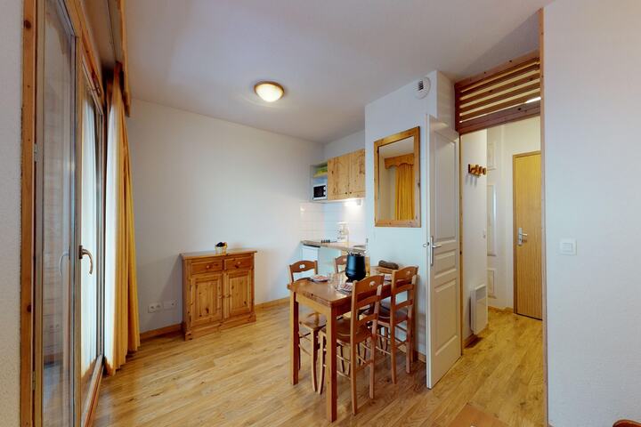 Guests have access to a ski room, laundry facilities in the building (extra charge), and an outdoor parking space, subject to availability. Pets are welcome. The residence is ideally located just 100 meters from the cable car and snowpark, with shops and restaurants nearby.