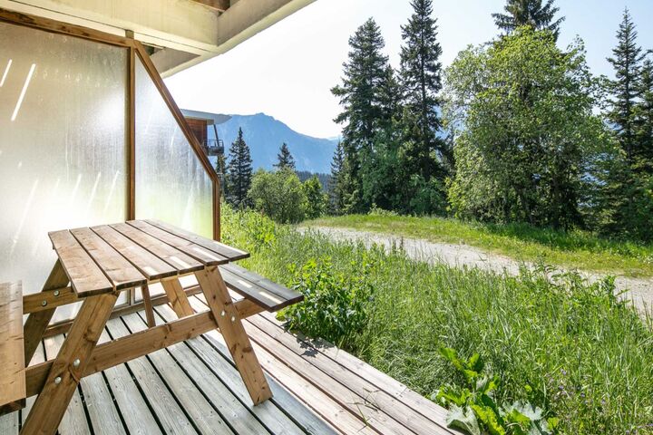 The apartment features a lovely 11 m² terrace with outdoor furniture, ideal for relaxing after a day on the slopes. Inside, you'll find convenient amenities such as a hair dryer and a TV for entertainment. Open-air parking is available for your convenience.
