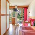 The electric kitchen is well-equipped with a refrigerator, microwave, dishwasher, dishes, cutlery, kitchen utensils, coffee machine, toaster, and kettle, ensuring you have everything you need to prepare meals and snacks during your stay. This apartment is a great choice for a comfortable and enjoyable mountain retreat.