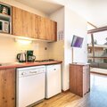 A fully equipped electric kitchen includes a refrigerator, microwave, dishwasher, coffee machine, toaster, kettle, and all essential utensils—making meal preparation simple and enjoyable. Whether you're skiing, hiking, or simply unwinding, this apartment blends comfort, location, and charm for a memorable mountain retreat.
