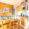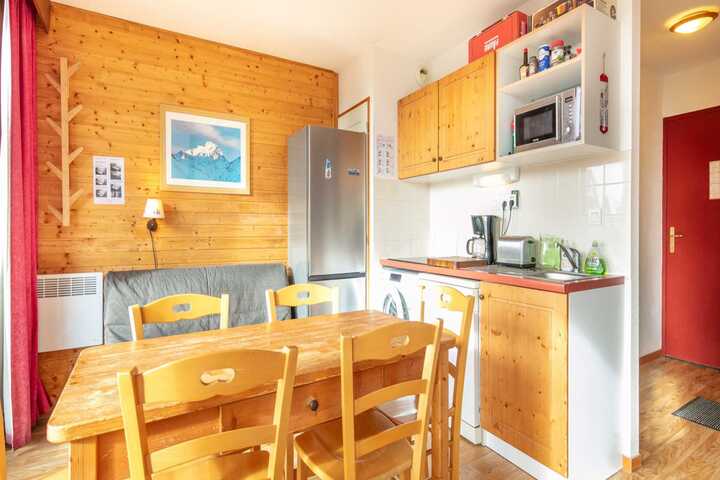 The open-plan electric kitchen is fully equipped with a refrigerator, microwave, oven, dishwasher, coffee machine, toaster, and all necessary dishes and utensils. Whether you're preparing a hearty breakfast or a cozy dinner, everything you need is at your fingertips. This apartment is a wonderful choice for a relaxing and memorable mountain getaway in Chamrousse.