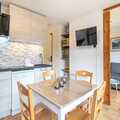 The open-plan electric kitchen is fully equipped with a refrigerator, microwave, oven, dishwasher, coffee machine, toaster, and kettle. With all the necessary dishes and utensils, it’s ready for cozy meals after a day on the slopes. Whether you're chasing adventure or seeking serenity, this apartment blends comfort, convenience, and alpine charm for an unforgettable escape.