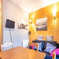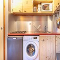 The open-plan electric kitchen is fully equipped with a refrigerator, microwave, oven, dishwasher, coffee machine, toaster, and kettle, as well as dishes, cutlery, and kitchen utensils. Whether you're preparing meals for a day of skiing or just relaxing, this kitchen has everything you need. With its great location, comfortable amenities, and cozy atmosphere, this apartment is the perfect base for your mountain getaway.