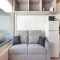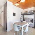 The open-plan electric kitchen is fully equipped with a refrigerator, microwave, dishes, cutlery, and a coffee machine, offering everything needed to prepare meals during your stay. Whether you're planning a quick breakfast before hitting the slopes or a cozy dinner afterward, the kitchen has you covered. With its prime location, modern amenities, and cozy atmosphere, this studio provides a fantastic base for your mountain getaway.