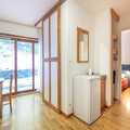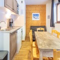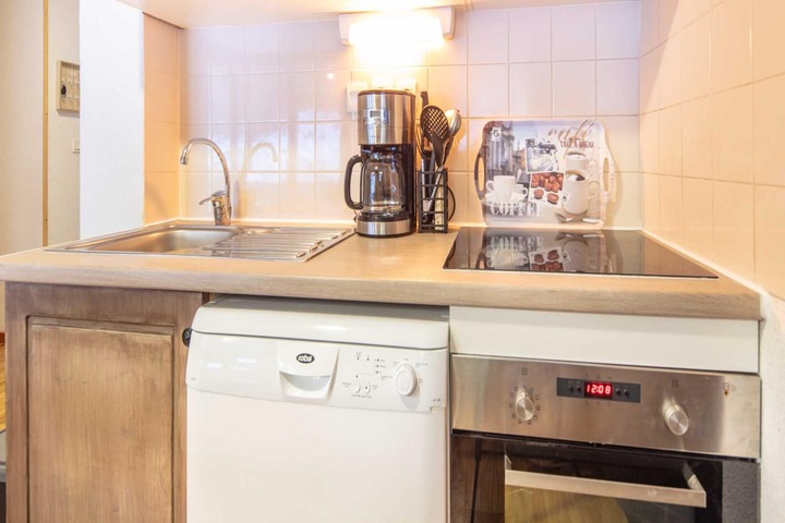 The open-plan electric kitchen is fully equipped with modern appliances, including a refrigerator, microwave, oven, coffee machine, and kettle, along with essential kitchenware. Whether you're preparing a quick breakfast or a hearty meal, the kitchen has everything you need. With its fantastic location, modern amenities, and inviting atmosphere, this apartment offers the perfect base for your mountain retreat.