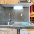 The studio includes a well-equipped electric open-plan kitchen fitted with a refrigerator, microwave, toaster, coffee machine, kettle, and all necessary kitchenware. Additional features include a private bathroom, a hair dryer, and balcony seating—ideal for taking in the crisp alpine air and scenic views after a day of outdoor activities.
