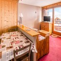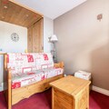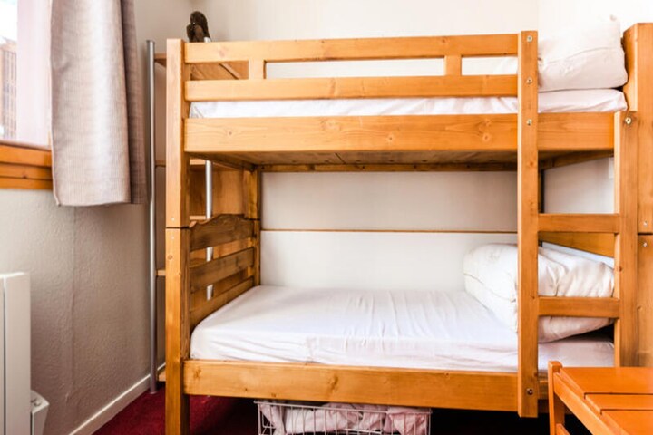 This cozy apartment in Alpe d'Huez accommodates up to 4 guests with a living room featuring a sofa bed and a bedroom with two single bunk beds. The property is pet-friendly, with prior authorization and an additional charge. It is equipped with a television, storage space, and offers Wi-Fi access for an extra fee. Bed linen and towels are available at an additional cost, and end-of-stay cleaning is mandatory, with daily cleaning offered for a surcharge. Covered parking is available for a fee.