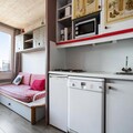 This charming apartment accommodates up to 5 guests with a living room featuring two sofa beds (one with a trundle bed) and a separate bedroom with a double bed. It is pet-friendly for an additional charge, with prior authorization required. The apartment is equipped with a television, a balcony offering mountain views, and a dishwasher for added convenience. Wi-Fi is available for an extra fee, and bed linens and towels can be provided for an additional charge. Housekeeping is available at the end of the stay, either by the guest or for a fee upon check-in.