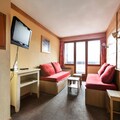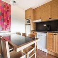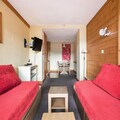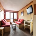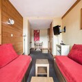 This spacious apartment offers comfort with 2 bedrooms, one with a double bed and the other with 2 single beds. The living room features 2 sofa beds, including 1 trundle bed, for up to 5 guests. It is pet-friendly, with prior authorization and an additional charge. The apartment is equipped with a television, safe, and ski locker. Wi-Fi is available for an extra fee, and the accommodation has a balcony with mountain views. Bed linens and towels are available for a fee, and end-of-stay cleaning is mandatory.