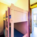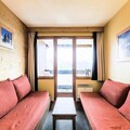 This cozy apartment offers a comfortable stay with a living room featuring two sofa beds and a separate cabin area with bunk beds or two single beds. The apartment is pet-friendly (subject to prior authorization and an additional charge) and includes Wi-Fi (for an extra fee), a television, and a safe for your valuables. Additional services, such as bed linens and towels, are available for an additional charge. A North-East facing balcony provides a relaxing outdoor space with a mountain view.