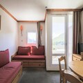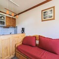 The apartment features a fully equipped kitchen open to the living room, allowing you to prepare your meals with ease. The bathroom includes a shower, while a separate toilet adds convenience. The apartment also boasts a balcony with stunning views, perfect for relaxing after a day of exploring. Additional amenities include access to a heated indoor swimming pool at the Palais des Sports et des Congrès (extra charge).