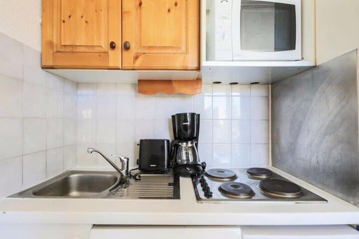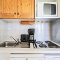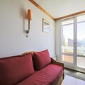 The apartment features a fully equipped kitchen, ideal for preparing meals, and a bathroom with a convenient shower. The separate toilet adds to the comfort of the space. A balcony offers a lovely spot to unwind while taking in the mountain views. Covered parking is available, and guests can enjoy the heated indoor swimming pool at the Palais des Sports et des Congrès for an additional fee.