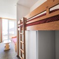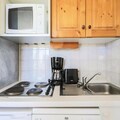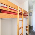 This charming apartment offers a cozy living space with a single sofa bed and a trundle bed, comfortably sleeping up to two guests. The alcove area features a double bed and a single bunk bed, perfect for families or groups. Pets are allowed for an additional charge with prior authorization. Additional services such as bed linen and towels are available for an extra fee, and daily cleaning can be arranged for a small cost. A mandatory end-of-stay cleaning service is required, payable upon arrival.