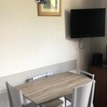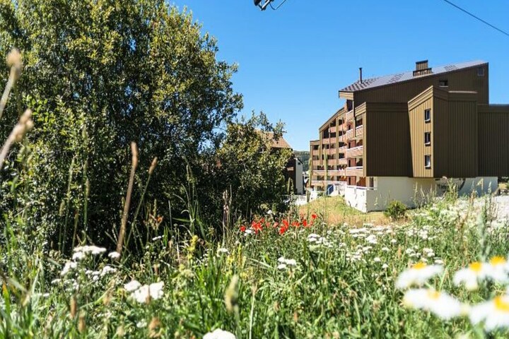This apartment in Alpe d'Huez offers a comfortable space for families or small groups, featuring a living room with a sofa bed for two and a cabin area with 2 single beds. The property is pet-friendly, with an additional charge and prior authorization from the owner. For added convenience, guests have access to a private balcony, offering scenic views, and parking. The residence also features an outdoor heated swimming pool and a bar. Bed linen, towels, and end-of-stay cleaning are available for an additional cost.