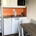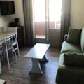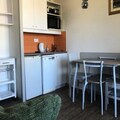 The apartment is equipped with a fully functional kitchen, open to the living room, perfect for preparing meals. The bathroom features a bathtub, and there is a separate toilet for convenience. Recent renovations, including a freshly painted kitchen and living room, along with a new heat transfer fluid radiator, ensure a cozy and comfortable stay. Other amenities include a baby kit (subject to availability), ski locker, and access to a sauna (for an extra fee).