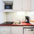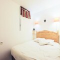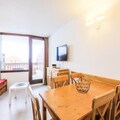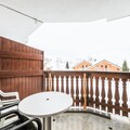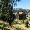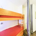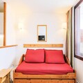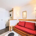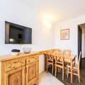 This apartment in the heart of the Alps accommodates up to 6 guests, featuring a living room with a sofa bed and trundle bed (sleeps 2), plus a cabin area with 2 single bunk beds. The master bedroom offers a queen-size bed (160 cm). It is pet-friendly, with an additional charge and prior approval required. Amenities include a large television, a safe, and a ski locker for convenience. Guests can enjoy a private balcony with outdoor seating. Bed linen, towels, and end-of-stay cleaning are available for an additional charge.